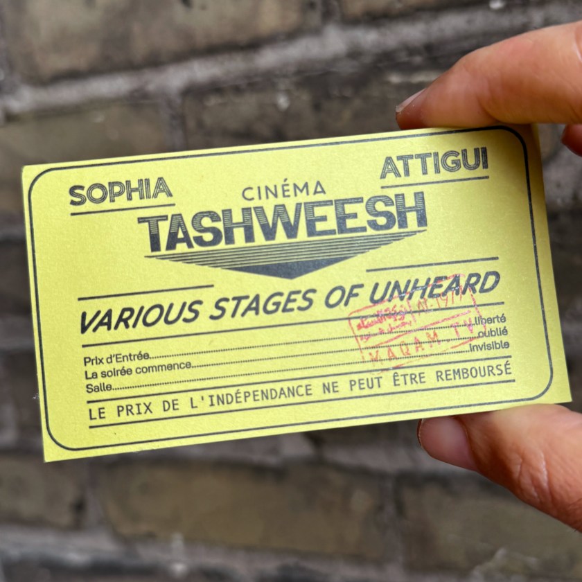 Sophia Attigui is an artist, cultural practitioner, educator and graphic designer based in Casablanca, Morocco. She holds degrees in philosophy of art, fine arts and curatorial studies and regularly collaborates with organizations and artists on projects relating to film, discourse and the arts.